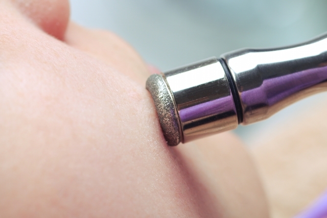A microdermoabrasão com peeling diamante consiste em uma caneta com ponteira de lixa diamantada que no centro da ponteira possui um orifício para sucção. A caneta é conectada a um aparelho de vácuo (Beauty Dermo) que puxa a pele e a comprime contra a ponteira, tornando a esfoliação ainda mais efetiva e aspirando as impurezas da pele. Promove uma remoção mecânica e controlada das camadas mais superficiais da pele, com esfoliação limitada à epiderme, podendo chegar a derme papilar. A abrasão e esfoliação são controladas e estimulam a produção de colágeno, que vem a ser a chave da elasticidade e do tônus facial. É um peeling leve, indolor, podendo ser usado para preparo da pele para peelings químicos ou utilizado isoladamente com bons resultados.