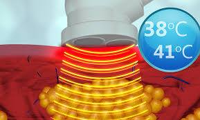 O aparelho de radiofrequência eleva a temperatura da pele e do músculo para aproximadamente 41ºC e isto contrai o colágeno existente e aumenta a produção de mais fibras colágeno e elastina, dando mais sustentação e firmeza à pele. Além disso, a elevação da temperatura rompe as membranas das células de gordura, fazendo com que esta seja eliminada do corpo. Os resultados podem ser observados nos primeiros dias logo após a primeira sessão e o resultado é progressivo, e por isso, quantos mais sessões, a pessoa fizer, maiores e melhores serão os resultados.